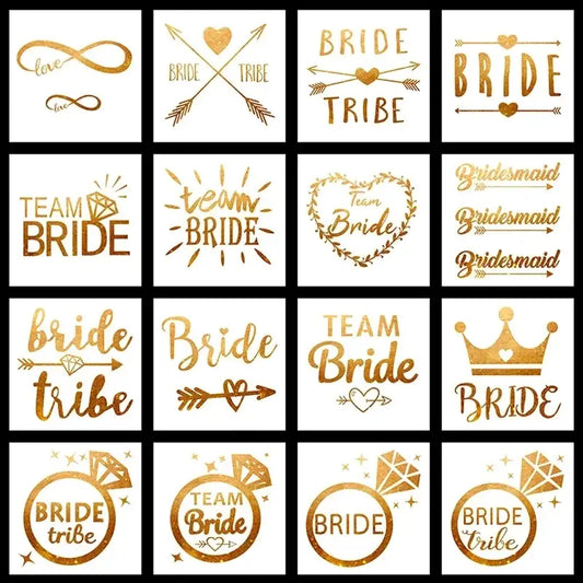 10Pcs Team Bride Tribe Golden Tattoo Stickers Bachelorette Hen Party Bridesmaid Decor Wedding Bridal Shower Bride To Be Supplies