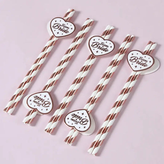Rose Gold Team Bride Disposable Straws Bridesmaid Bridal Shower Veil Hen Decor Bachelorette Party Supplies Wedding Decoration